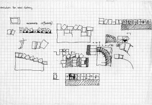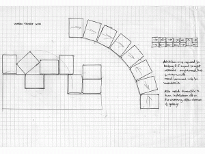 ‘The installation was installed in a large display window at the Ikon. The colour receivers rested on a plinth tilted at approx 45 degrees. A pre-recorded tape replayed images of a woman’s legs, walking in the frame from left anmd then to the right continuously. The camera is also tilted at 45 degrees and tracks the movement of the woman, holding her legs in mid-frame and thus dissecting the screens. Every 2 minutes the colour changes as the legs’ coverings change in hue. At times tight close-ups interrupt the staedy flow of the movement back and forth.