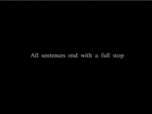 “Some of these ideas are drawn out in their purest form by the Sentences series, 1988-93, in various languages and formats. The hints of linguistic philosophy, its word-games and literalness, which permeate the earlier works, are here centred on screen. The sentences in the cycle are self-referential tautologies, near-complete propositions which encompass all their elements – including graphic signs such as full stops. The digital play of letters is complements by a pop-mix soundtrack, so that the austerity of the printed word enters a more demotic or popular sound-space, taking up the post-Fluxus word-play format of artists like Paul Sharits and Michael Snow, but here stripped down to bare statements rather than expanded by word association, the Sentences ramify out in later pieces. “- Stephen Partridge, cat, Univ of Dundee, 1998, MONITORING PARTRIDGE, Al Rees, ISBN 1 899837 29 9